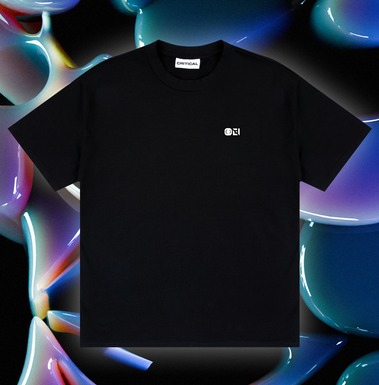 A black, oversize fit tee with Enei and Critical logo printed on front